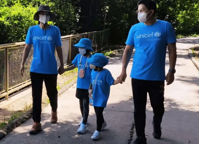 霍启刚夫妇带着孩子参加公益跑