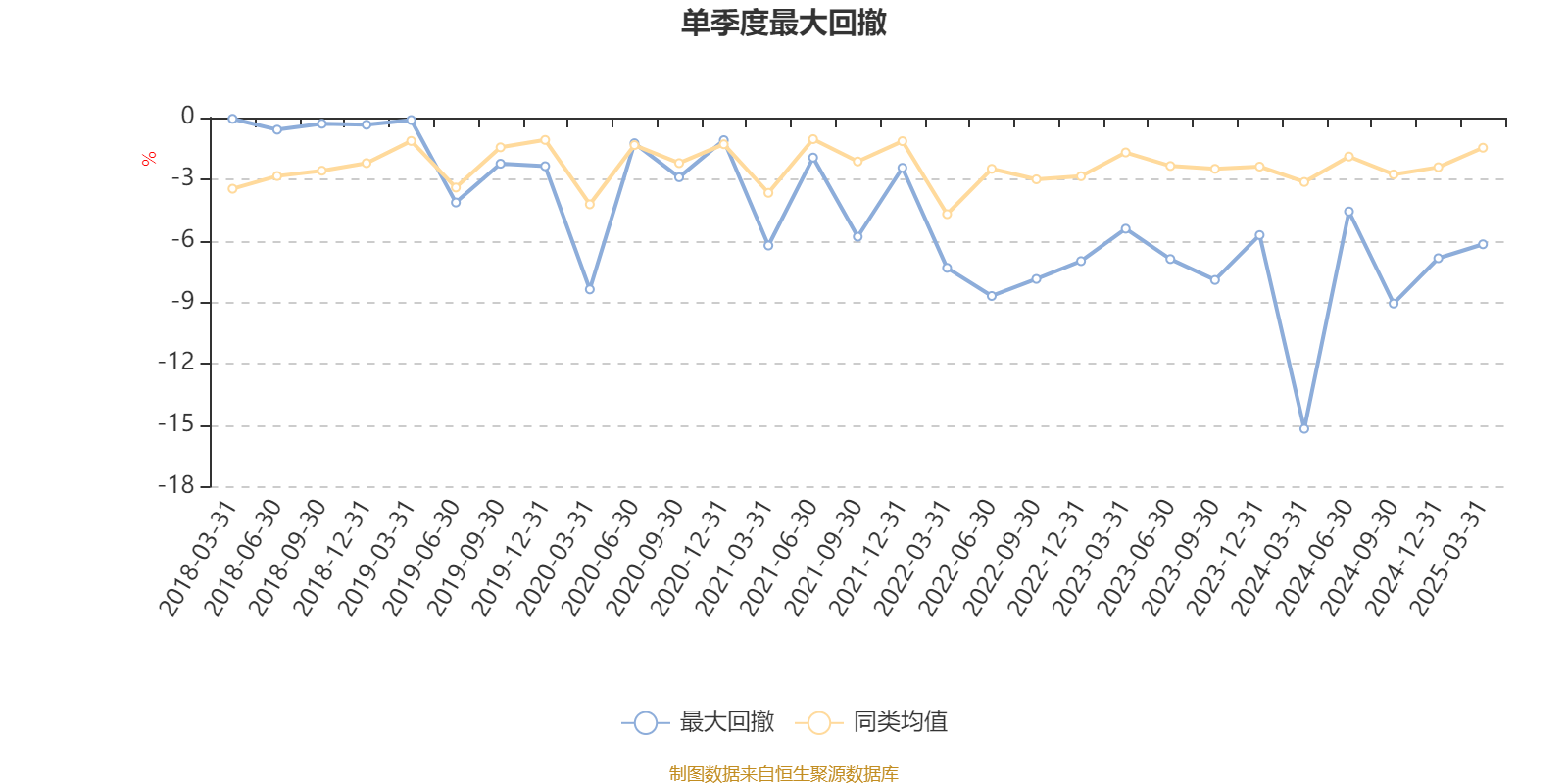 截至4月3日,基金近三年最大回撤为27.35%,同类可比基金排名7/546。单季度最大回撤出现在2024年一季度,为15.18%。