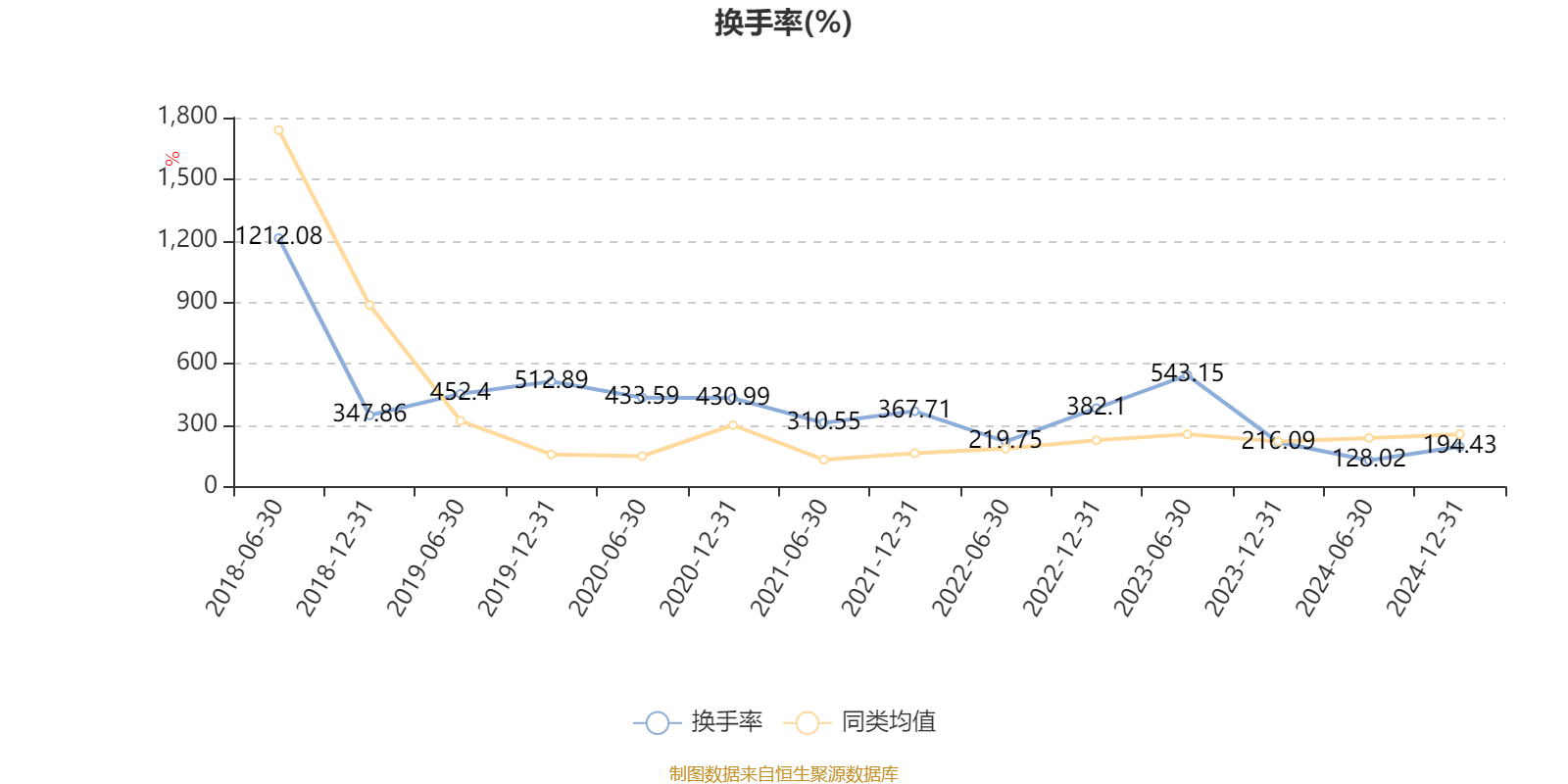截至2024年12月31日,基金最近一年换手率约316.43%,持续1年低于同类均值。